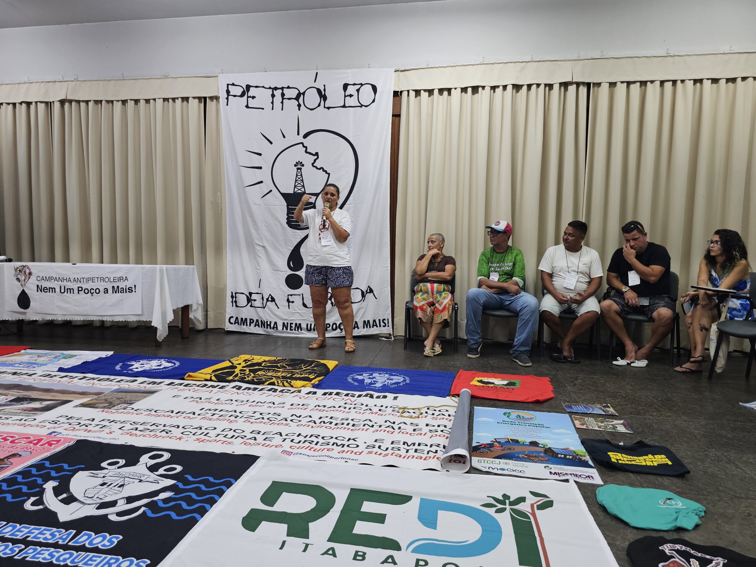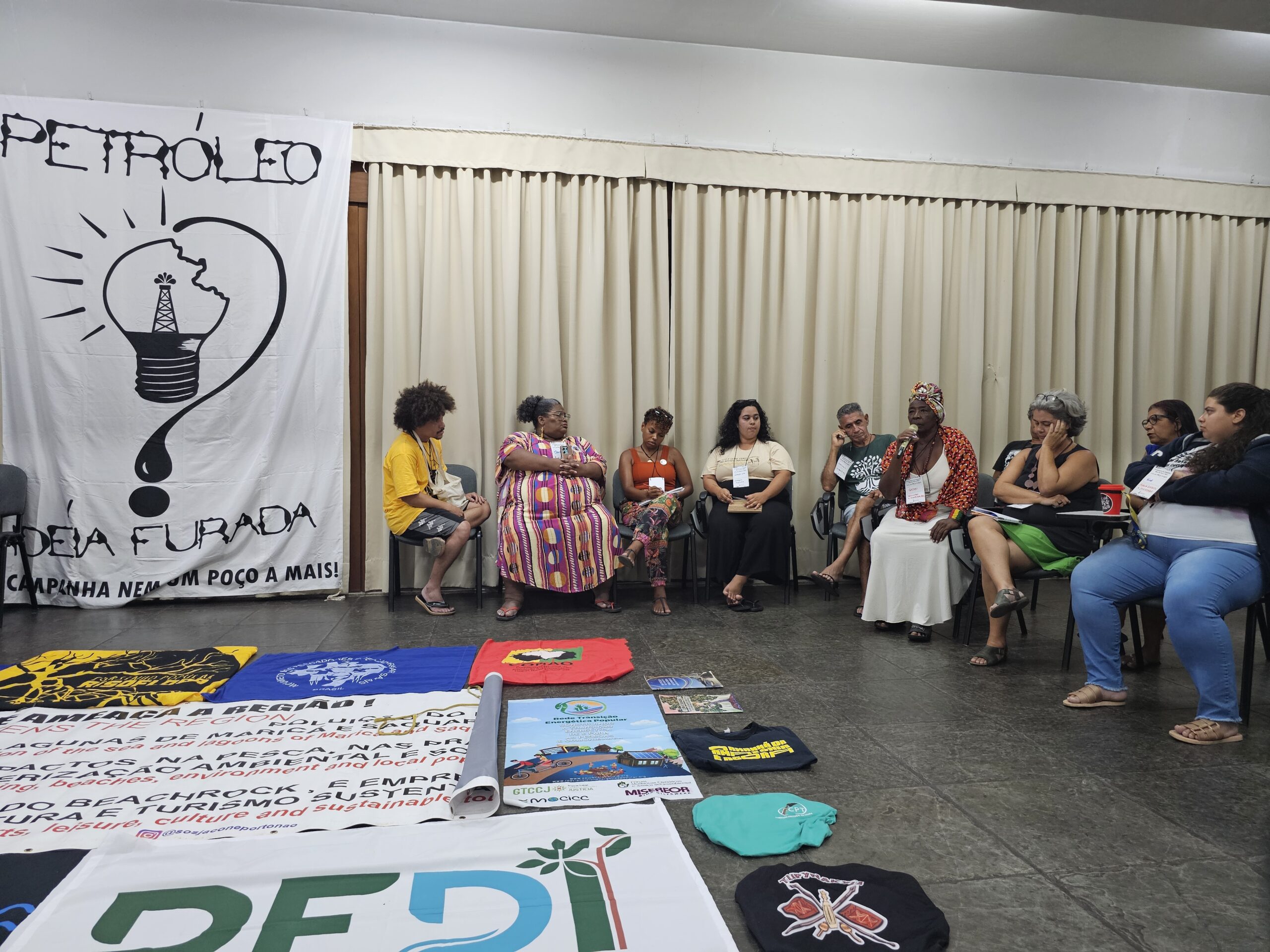 A participação de lideranças populares no seminário reforçou o papel fundamental das comunidades tradicionais na linha de frente da resistência à expansão petroleira. Néia Vieira, pescadora e marisqueira de Cariacica (ES), militante do Movimento dos Pescadores e Pescadoras Nacional e presidente da Associação dos Pescadores Artesanais de Porto de Santana e Adjacências, destacou a importância da campanha como instrumento de conscientização e mobilização coletiva. “É de grande importância a gente estar participando dessa campanha Nem um Poço a Mais. Porque às vezes eu pergunto: pra que mais um poço? O mundo está muito ‘petrolizado’. A gente tem que tentar ‘despetrolizar’ essa questão. Nós aqui somos multiplicadores e levamos informações para a nossa base. Eu levo pra minha base da pesca, das marisqueiras, a importância de enfrentar esse impacto que vai chegar para dentro das nossas comunidades. A gente se preocupa muito em relação ao meio ambiente, porque nós somos guardiões do meio ambiente”, relata.